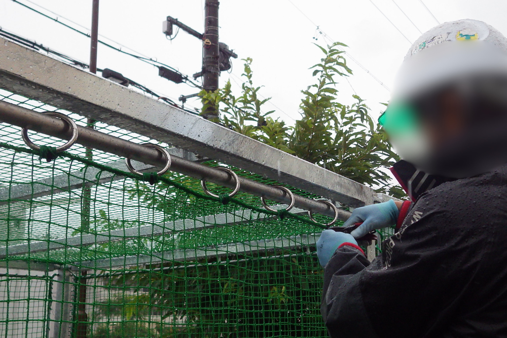防鳥ネット工事(ゴミ置き場)PE25mm目