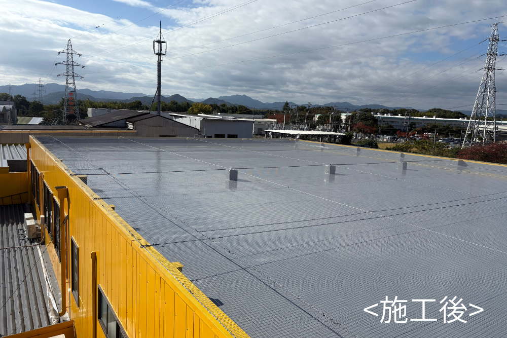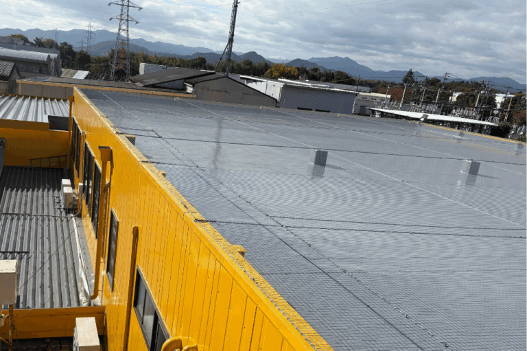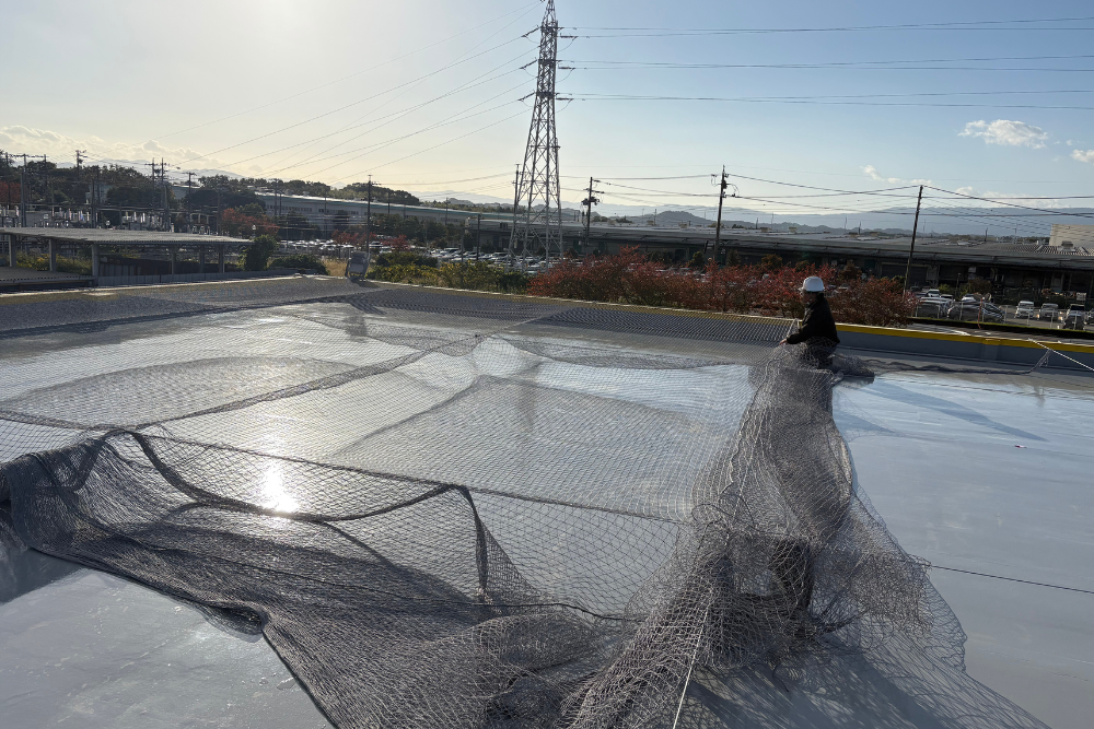 工場屋上に防鳥ネットを設置しました。
