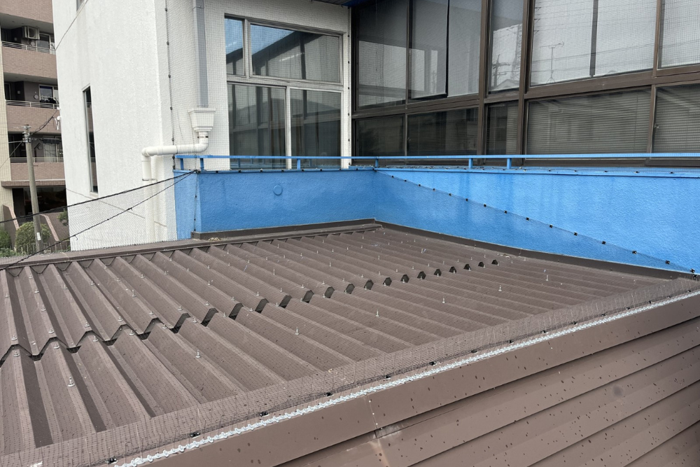防鳥ネット工事(庇・外部廊下)ハイレンジャーK15・トマレンジャー