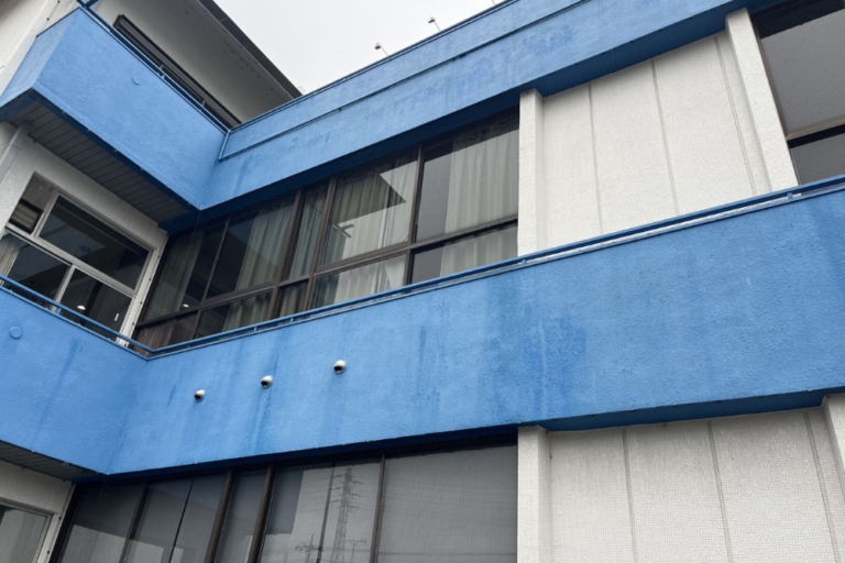 折板屋根の隙間からハトが屋根内部へ侵入・繁殖してしまう問題と、外部通路の腰壁(手すり壁)にハトが繰り返し飛来し、
