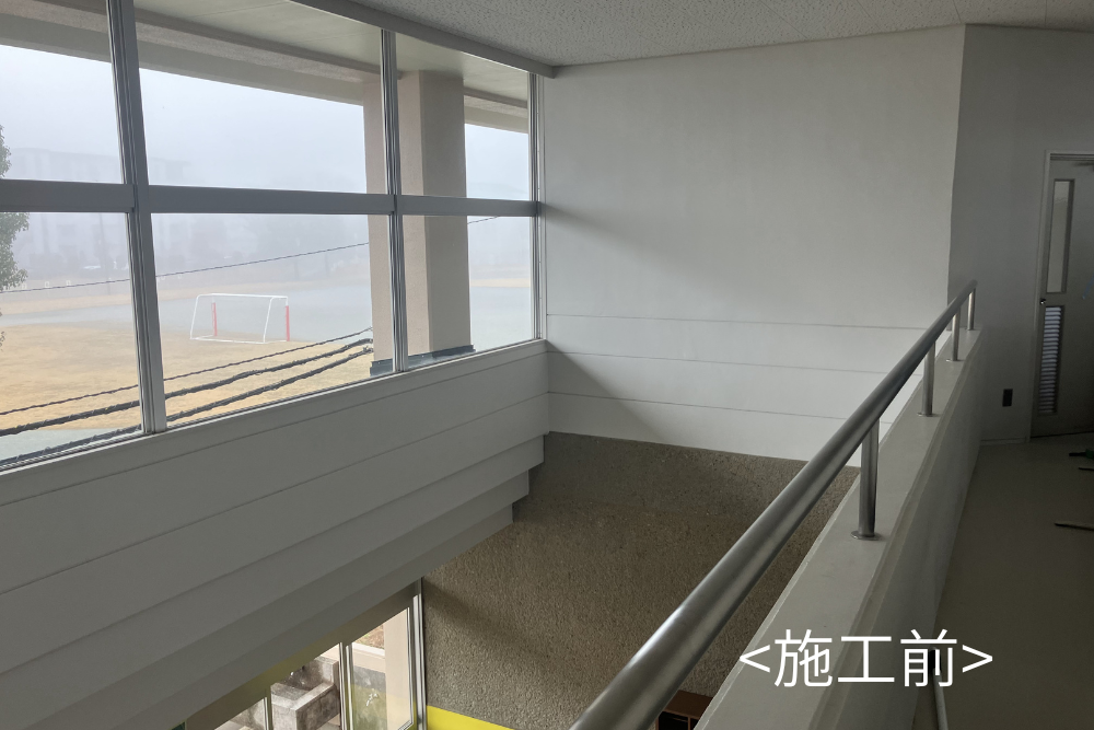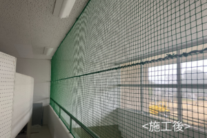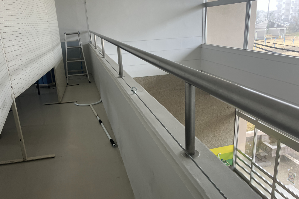 学校の共有部において、吹き抜けや手摺りからの子どもの落下対策を目的とした防護ネット工事を実施しました。