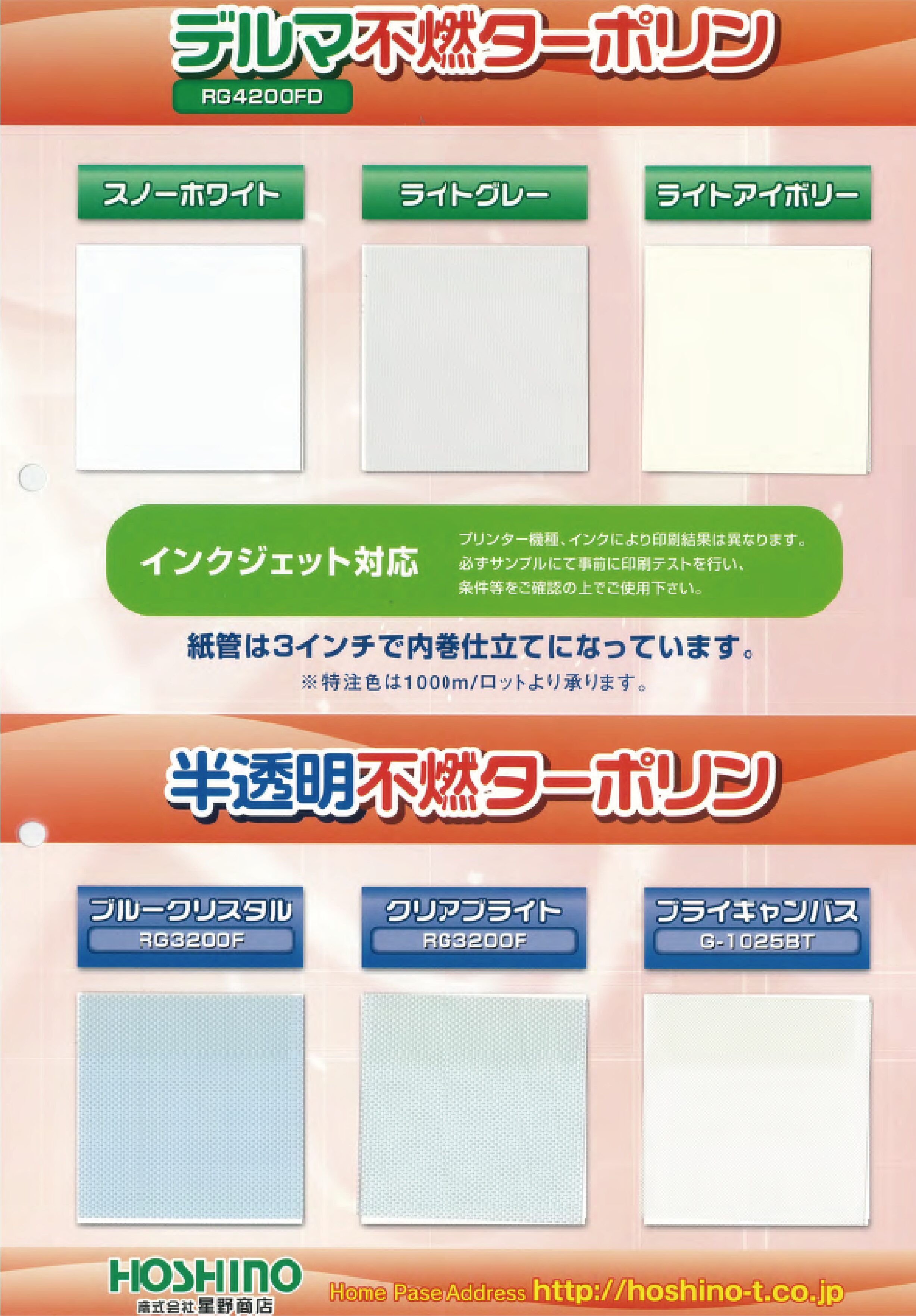 【ビニールシート 株式会社星野商店】デルマ不燃・半透明不燃ターポリン