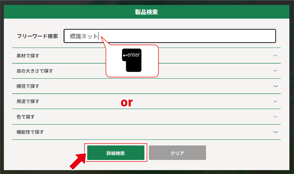 入力できたらそのまま「enter」キーを押すか、左下の「詳細検索」を押します