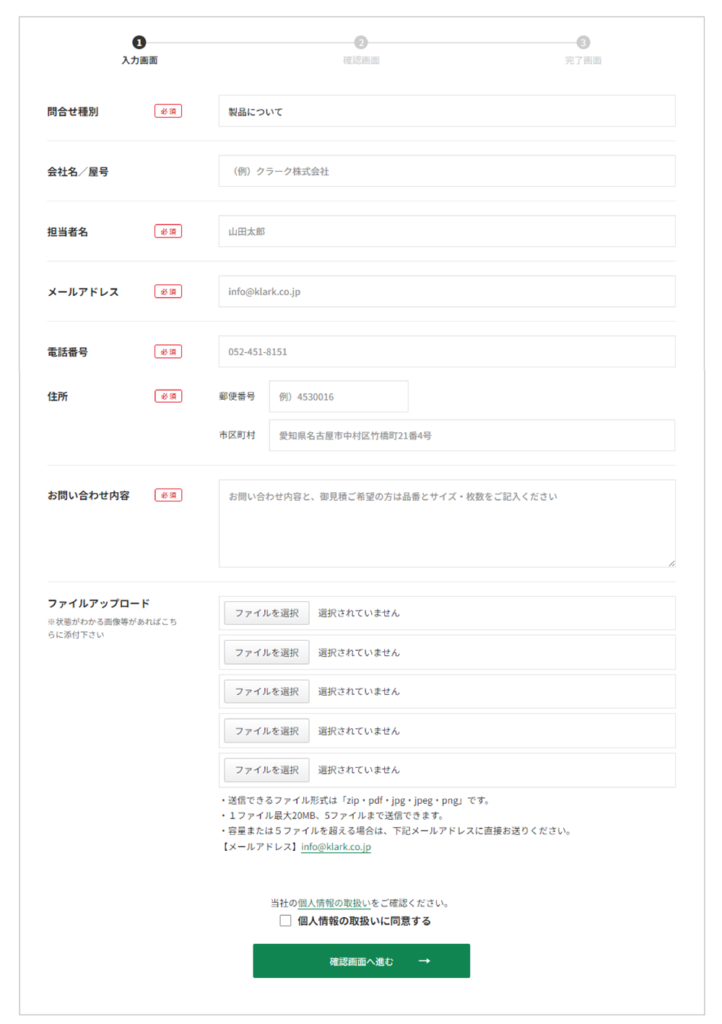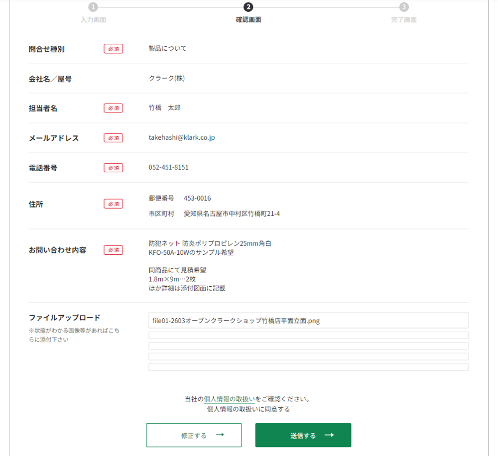 当社の個人情報の取扱いをご確認いただいたのち、