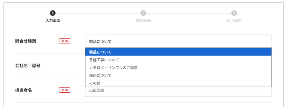 今回は見積希望なので「製品について」もしくは、