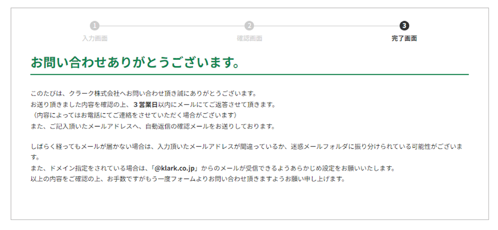 件名:【クラーク株式会社】お問い合わせありがとうございました。