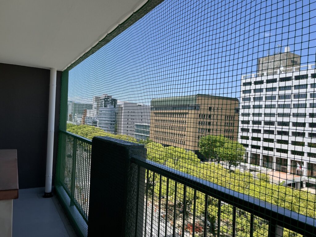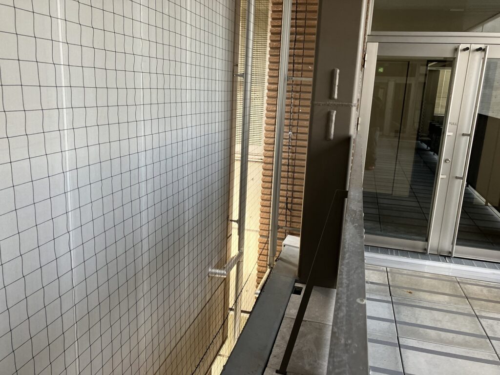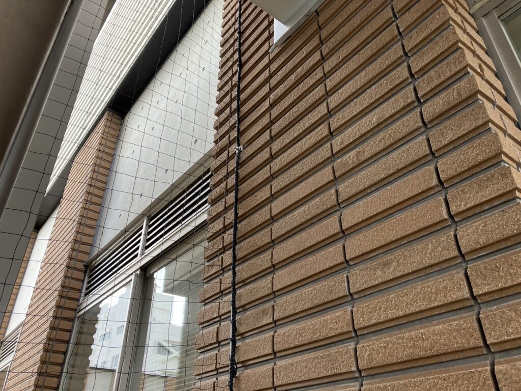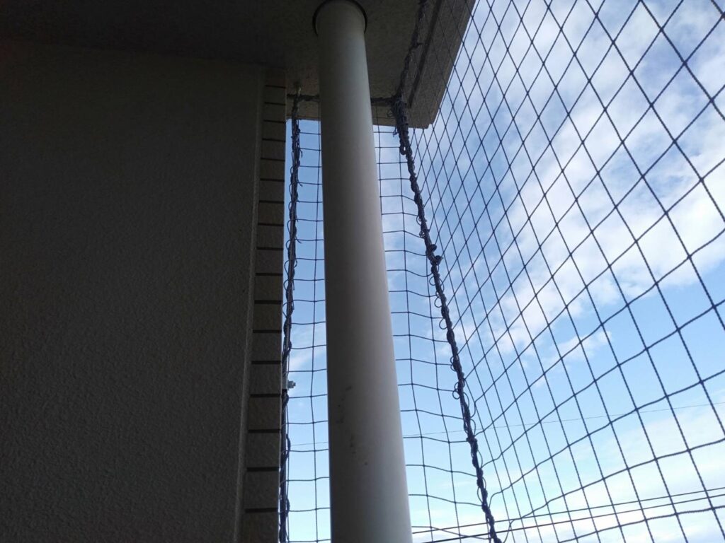 ネットの目が直角にそろうようにたるませず取付を行うことで機能性と視認性、建物の美観をまもることができます。