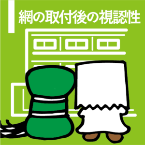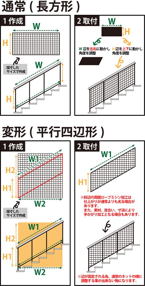 ■平行四辺形にネットを取付ける代表パターン、階段落下防止ネットの施工例はこちら(当社工事サイトにリンクしています)