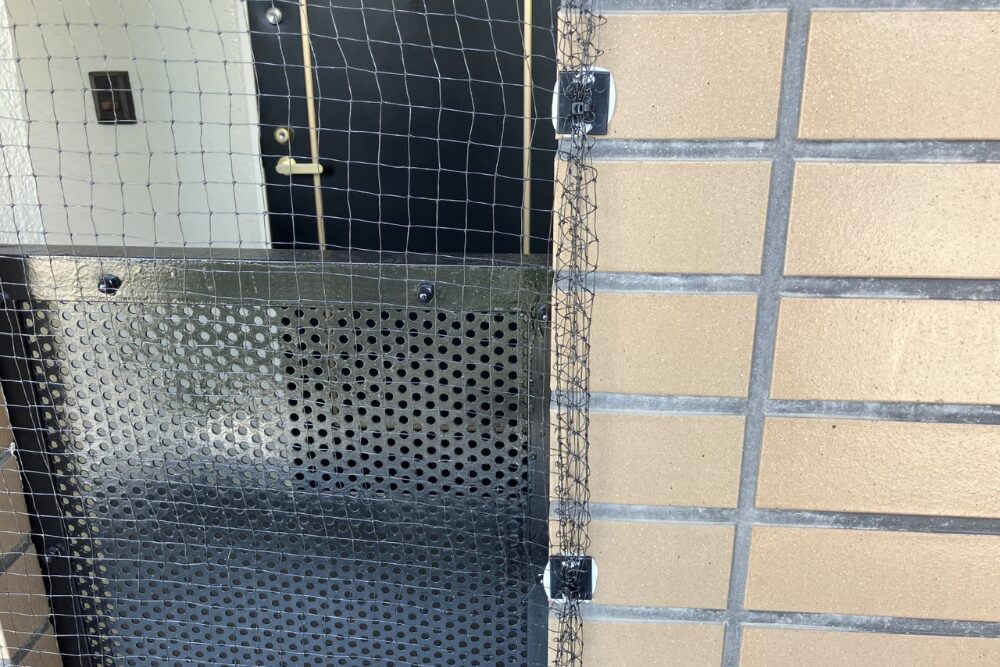 防鳥ネット工事 の施工事例をご紹介。マンションの共用部に小鳥の侵入をふせぐために、防鳥ネットを設置しました。 低コストで設置できる単線ネットは、見た目にも目立た…