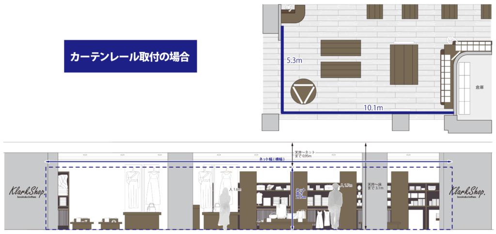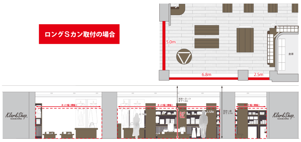 必要な寸法は主に・高さ(天井高)と・ネットを取りつける箇所の幅(横幅)です。