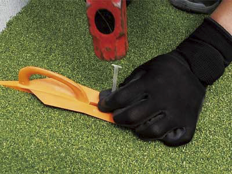 人工芝をピンで固定する際に、パイルとパイルの間を簡単に掻き分けることができるため、