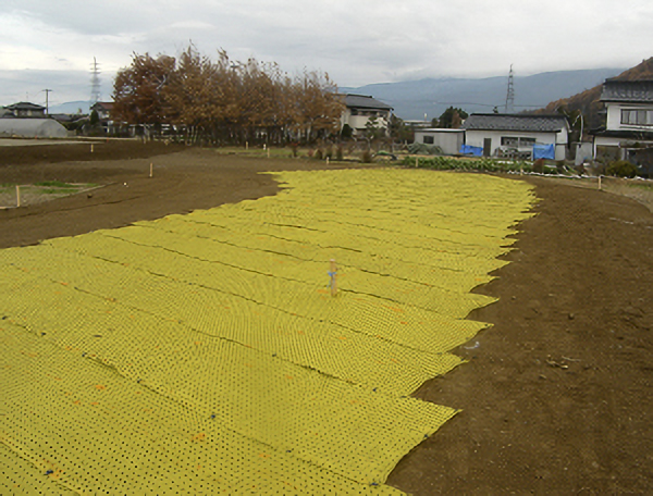 | 用途 | 土中において植栽樹木、草本に影響を与えることなく植栽根茎の侵入を防止する |