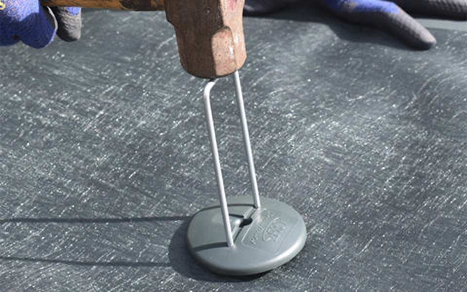 GFワッシャー®には3つの窪みがあり、それぞれのピンを差込みハンマーで叩き込んで固定します。