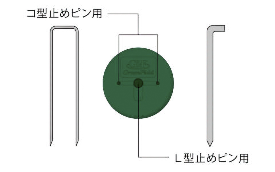 | 用途 | L型止めピン、コ型止めピンに対応 曝露、砂利下での雑草抑制 |