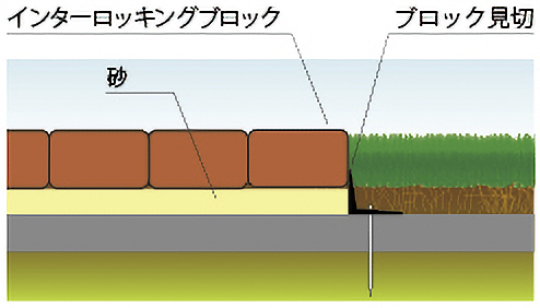 インターロッキングブロックなどの縁に使用することで、ブロック敷きの歩行路などに