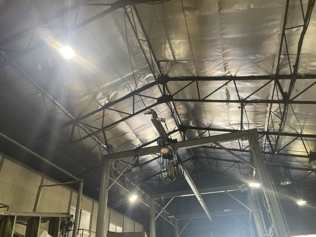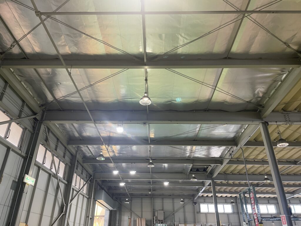 ●建物の天井付近に施工することで輻射熱をカットして屋内の温度上昇を抑制できるシート