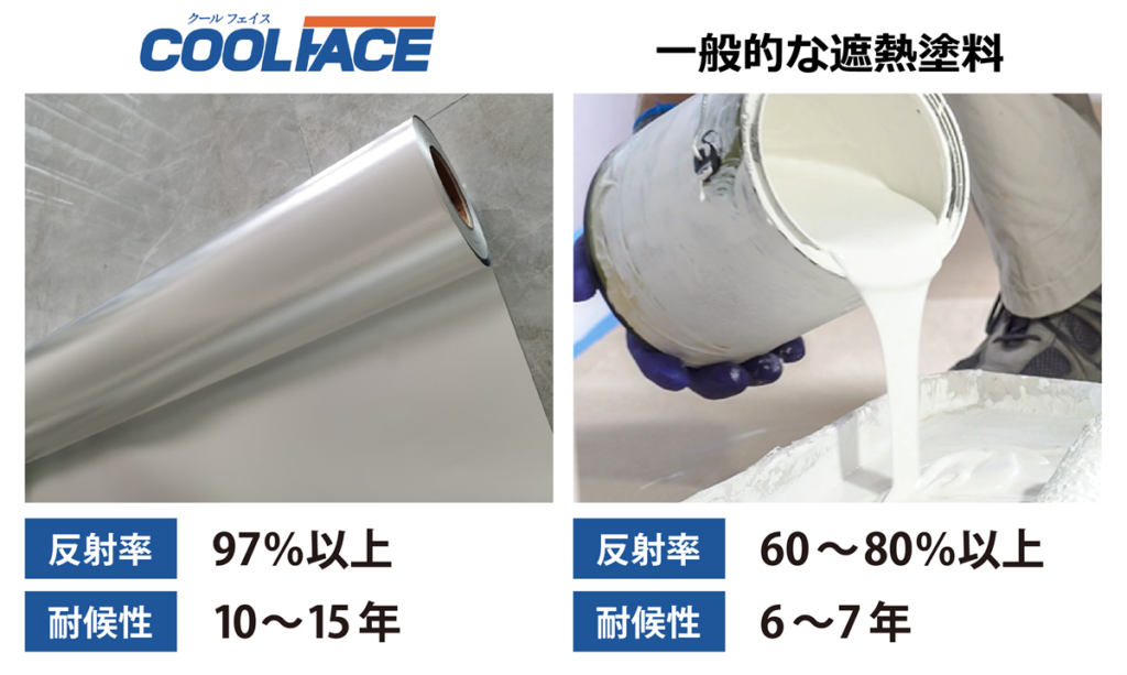 一方、遮熱塗料は反射率60~80%、耐候性は6~7年程度で、ムラや劣化のリスクもあります。