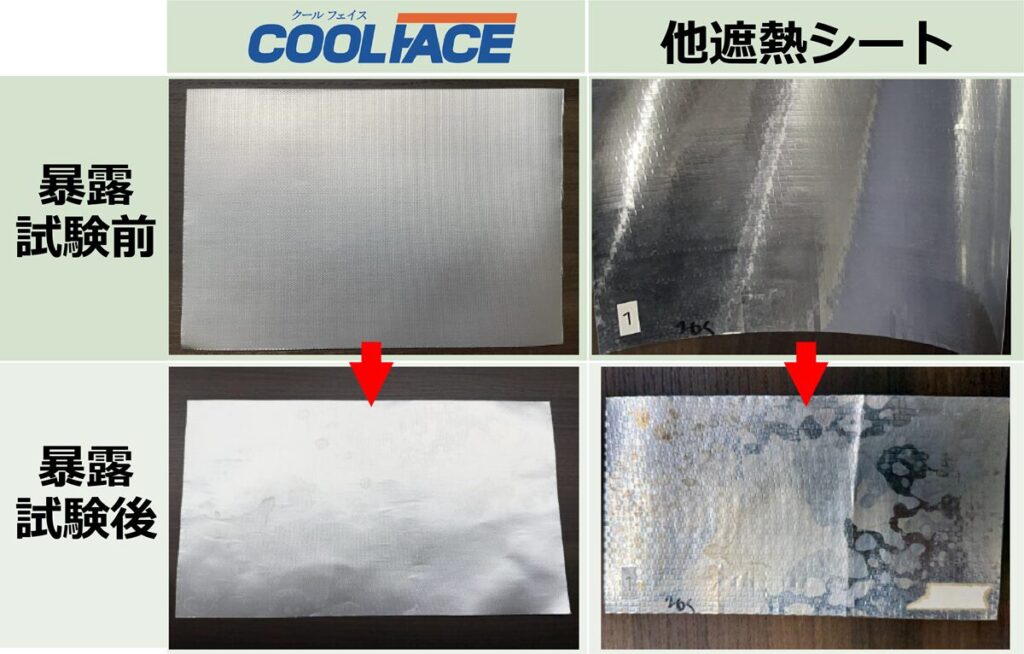 暴露試験の結果が証明するように、COOLFACEはアルミ箔の剥離がほとんどありません。